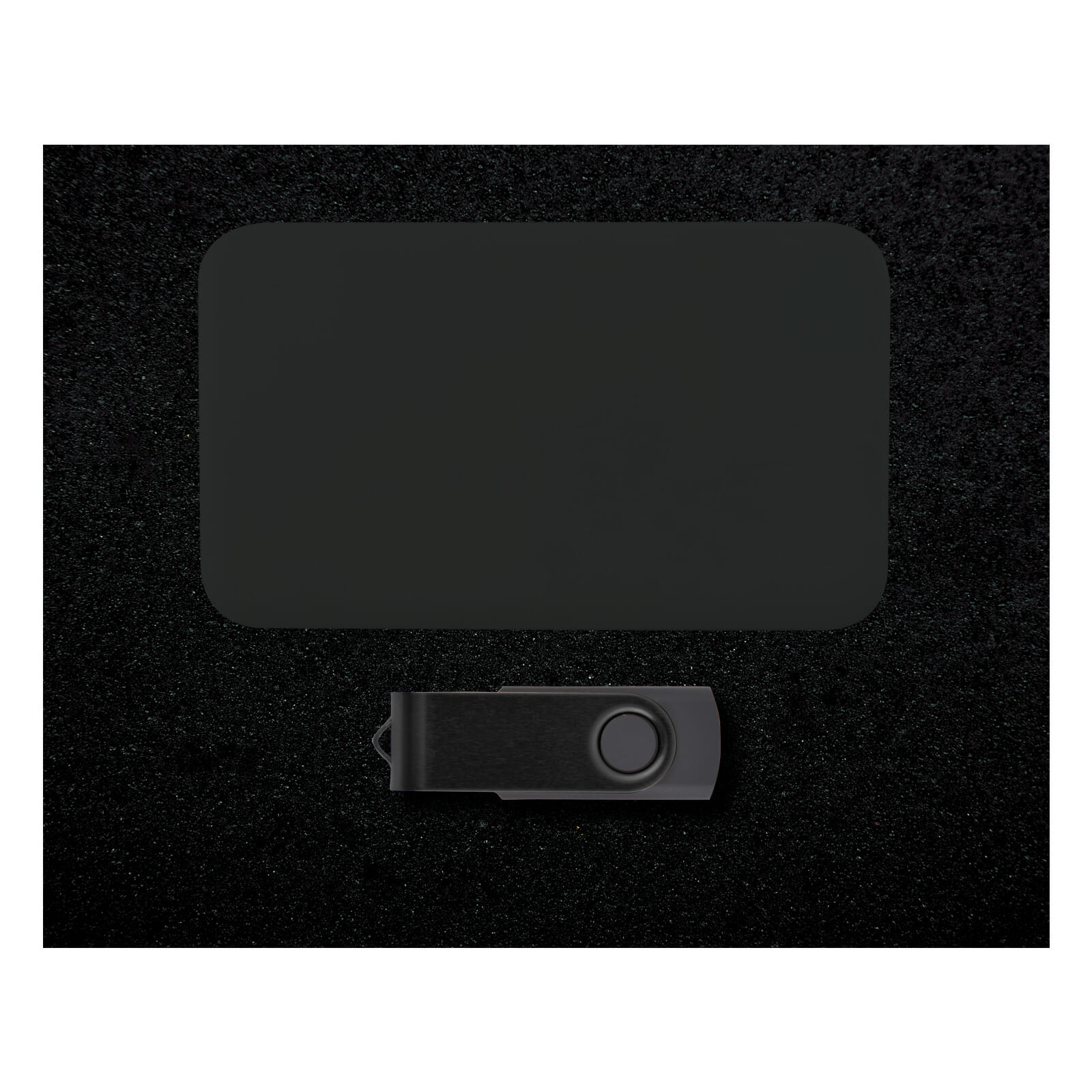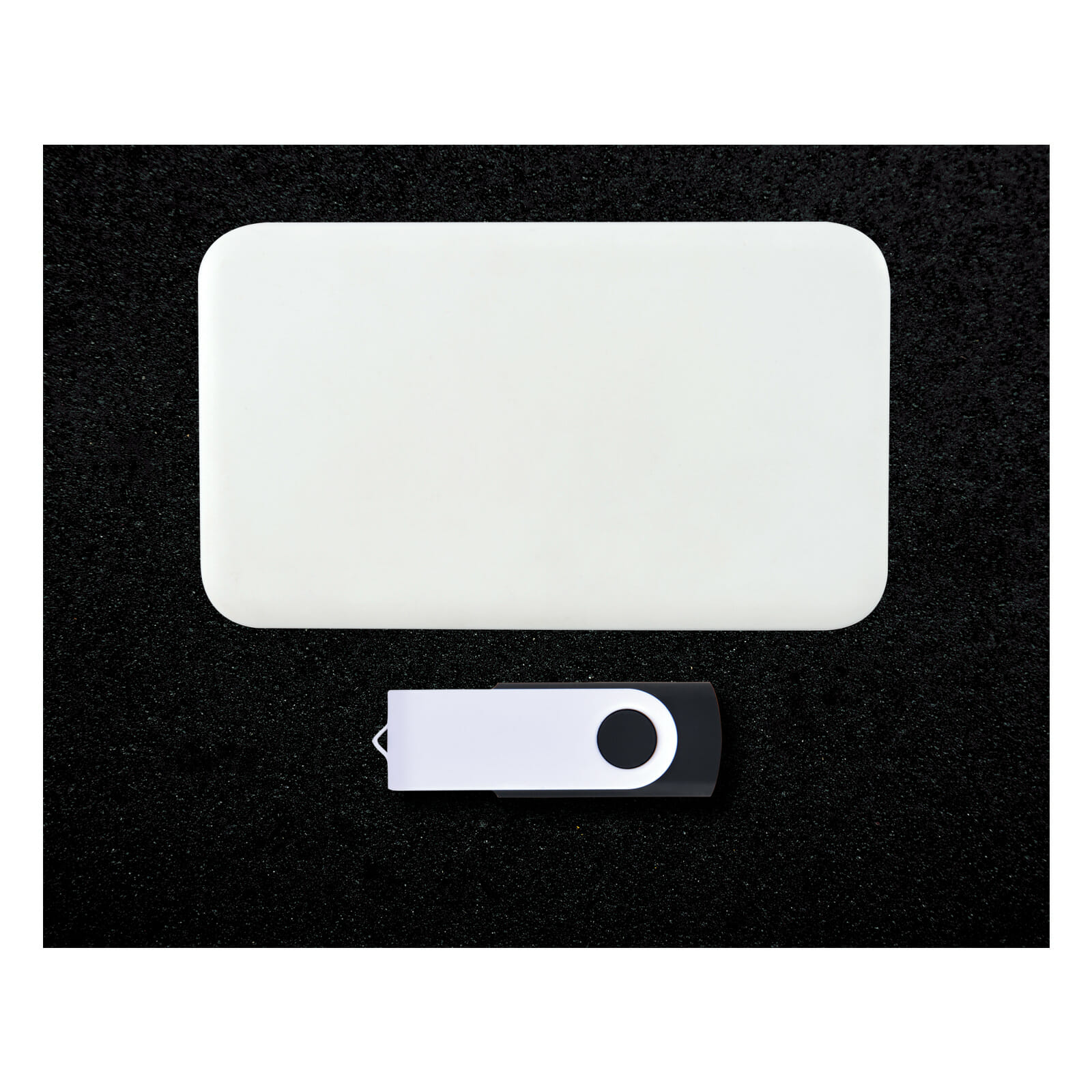 Digital Print: Dynamo Power Bank- Top -115 x 70mm (LxH), Swivel Flash Drive – Top – 27 x 14mm (LxH), Pad Print on Black Gift Box: Box Lid – Square 60mmL x 60mmH, Digital Sleeve on Black Gift Box: 170 x 396mm (LxH) See template