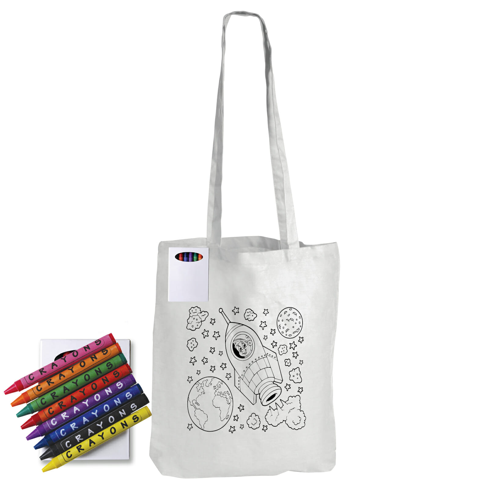 Colouring Long Handle Cotton Bag & Crayons