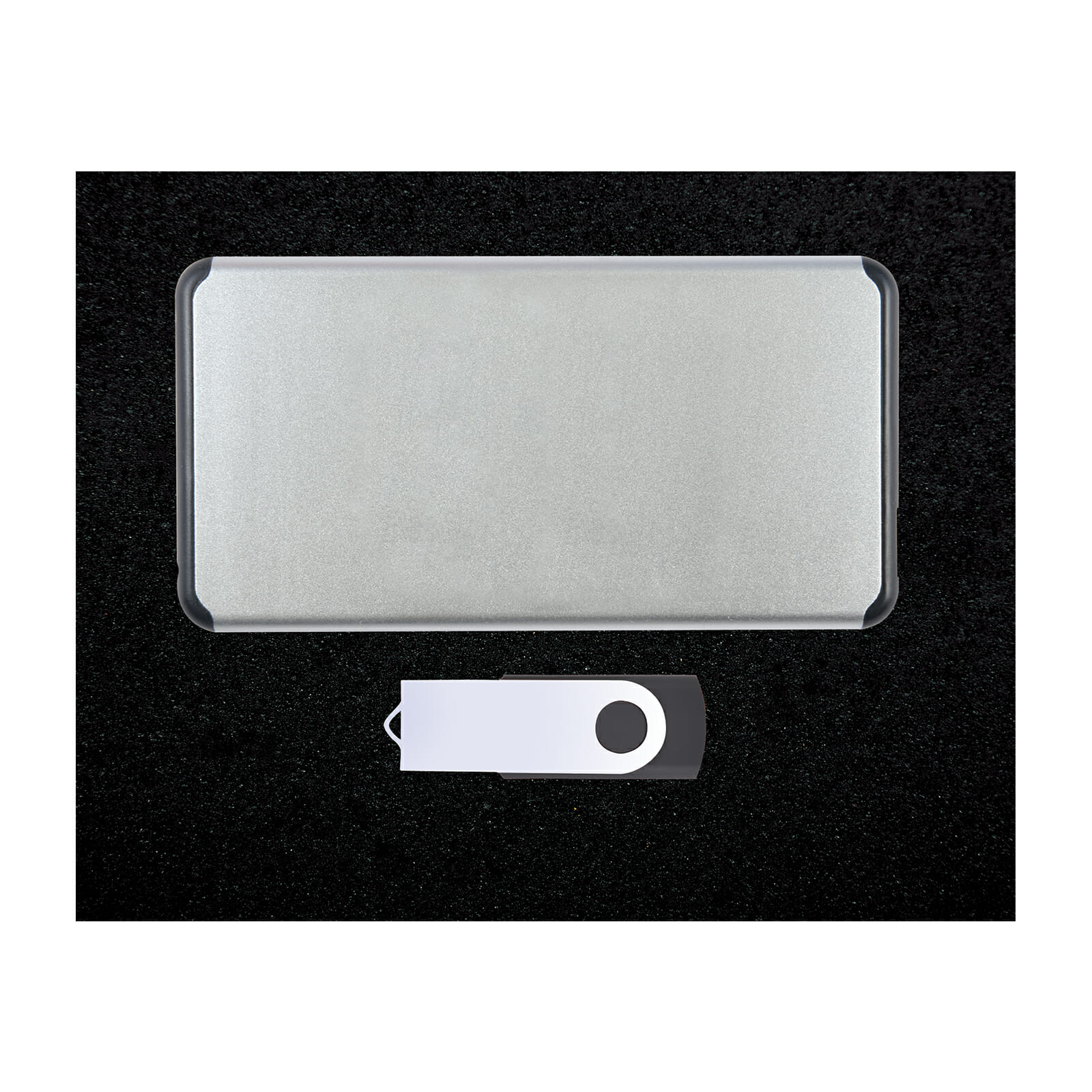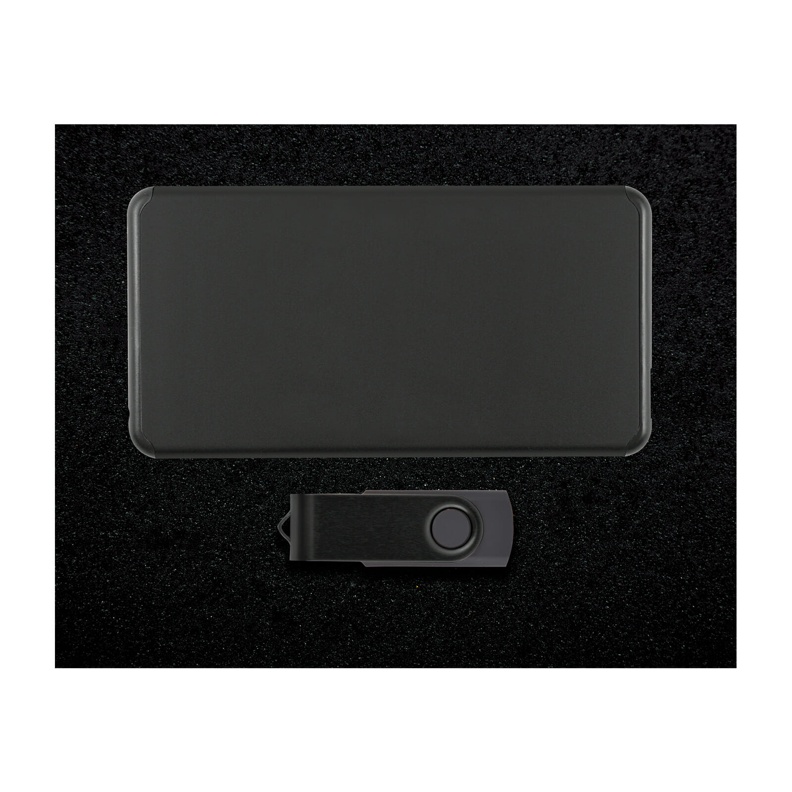 Digital Print: Power Bank – 30 x 40mm (LxH), Flash Drive – 27 x 14mm (LxH), .: Power Bank – 30 x 40mm (LxH), Flash Drive – 27 x 14mm (LxH), Screenprint on Black Gift Box: Black Gift Box Lid – 60 x 60mm (LxH), Digital Sleeve on Black Gift Box: 170 x 396mm (LxH) See template