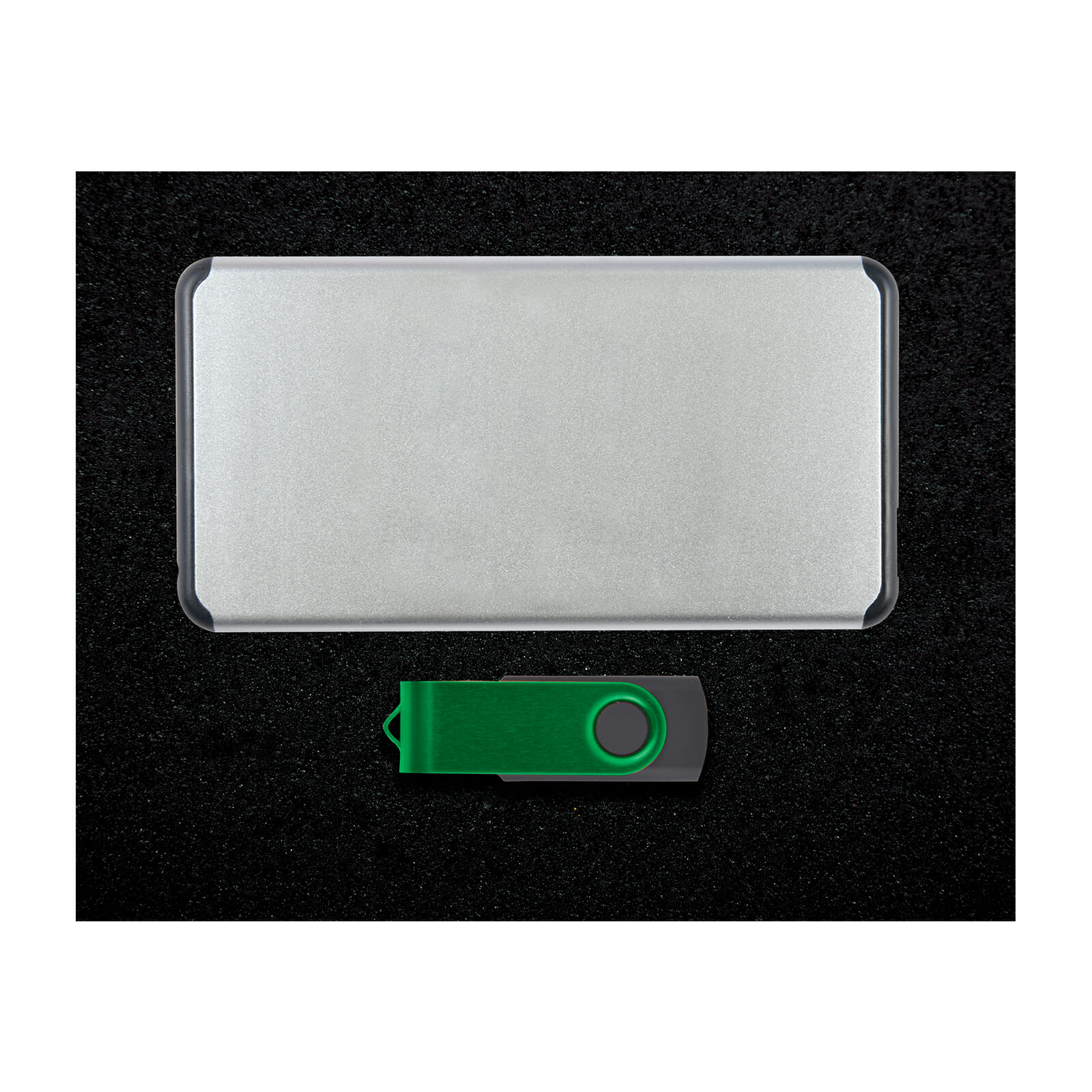 Superior gift set of 4000mAh Matrix Power Bank and 4GB Swivel Flash Drive packed in 2 piece cardboard gift box with laser cut foam insert. Includes 3 in 1 connector cable fo charging most phones on the market. Includes items:LL9204 Matrix Power Bank LL9600 Swivel USB Flash Drive LL826 Superior Gift Box.