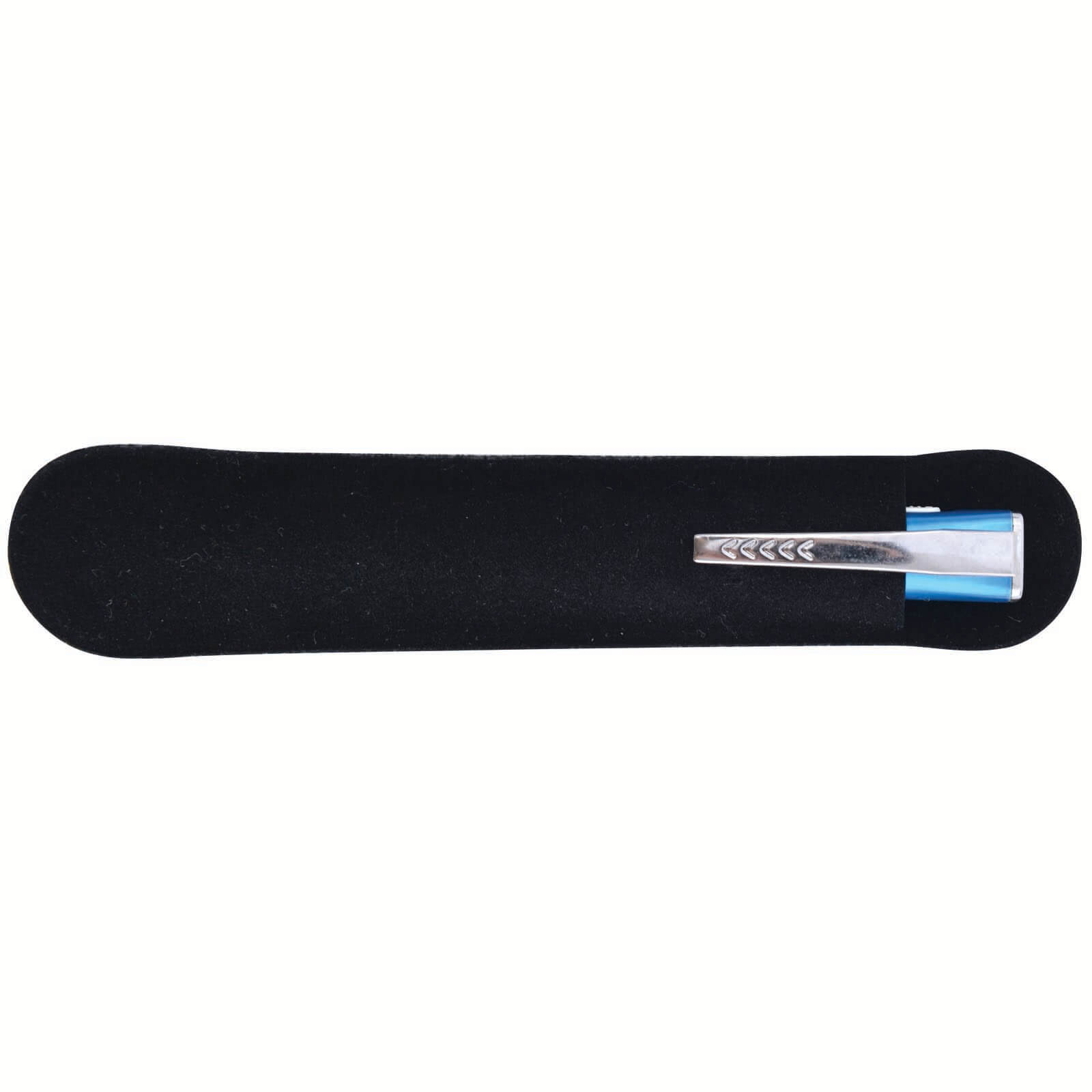 Twist action LED ballpoint plastic torch pen with powerful white light available in range of metallic colours. Optional black suede velvet pouch.Writing distance: 2.1 kilometres. TC roller ball. Nero pigment ink.