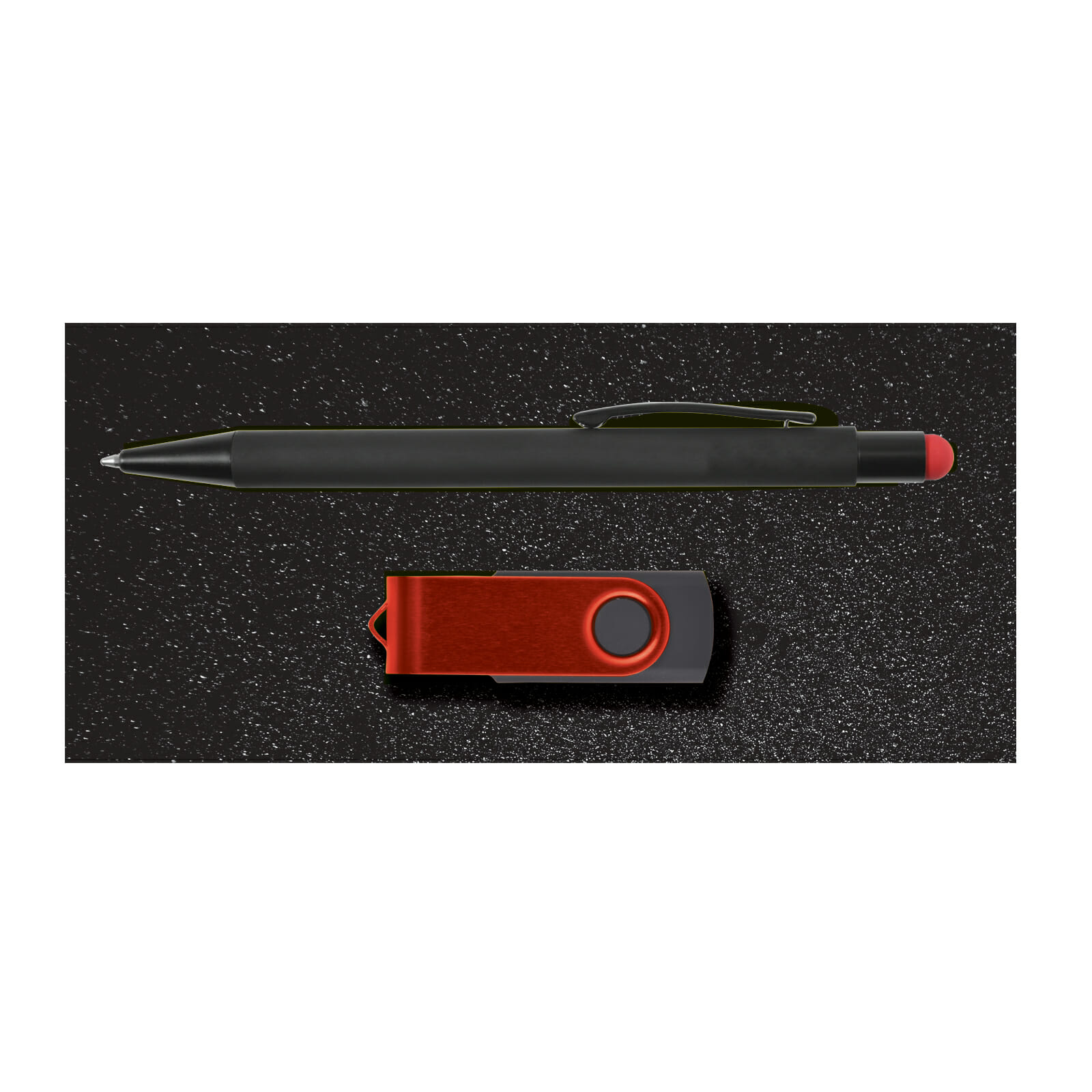 Style gift set of Opal Pen and 4GB Swivel Flash Drive packed in 2 piece cardboard gift box with laser cut foam insert. Includes items:LL3280 Opal Pen LL9600 Swivel USB Flash Drive LL821 Style Gift Box.