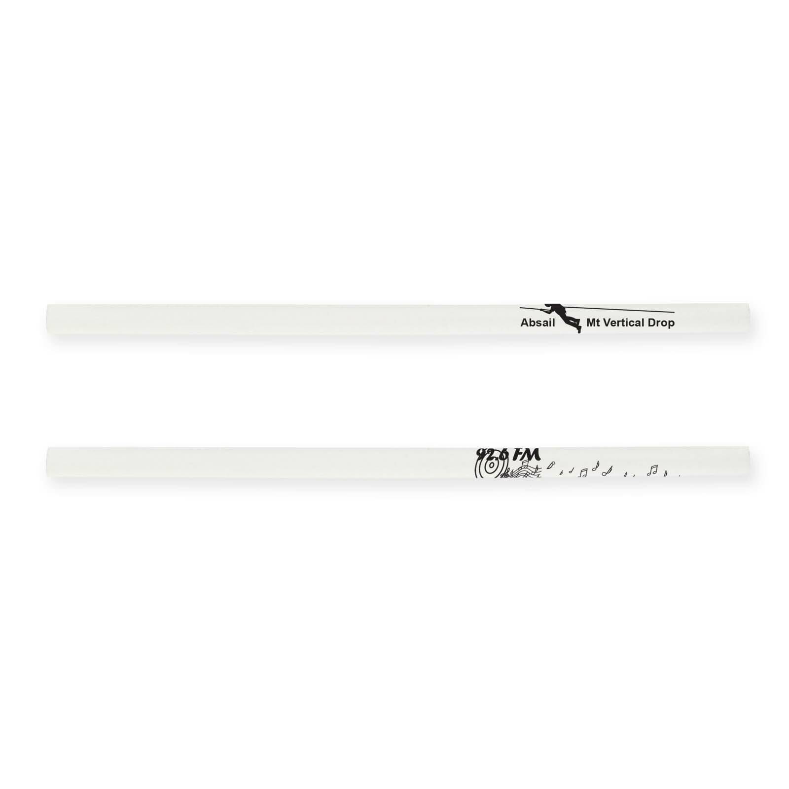 White full length round unsharpened pencils. Made from recycled newspapers. Eco Credentials: Sustainable and recyclable.
